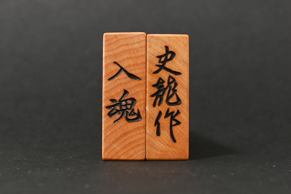 史龍作(川内史郎作) 島黄楊柾目彫駒 蜀紅書